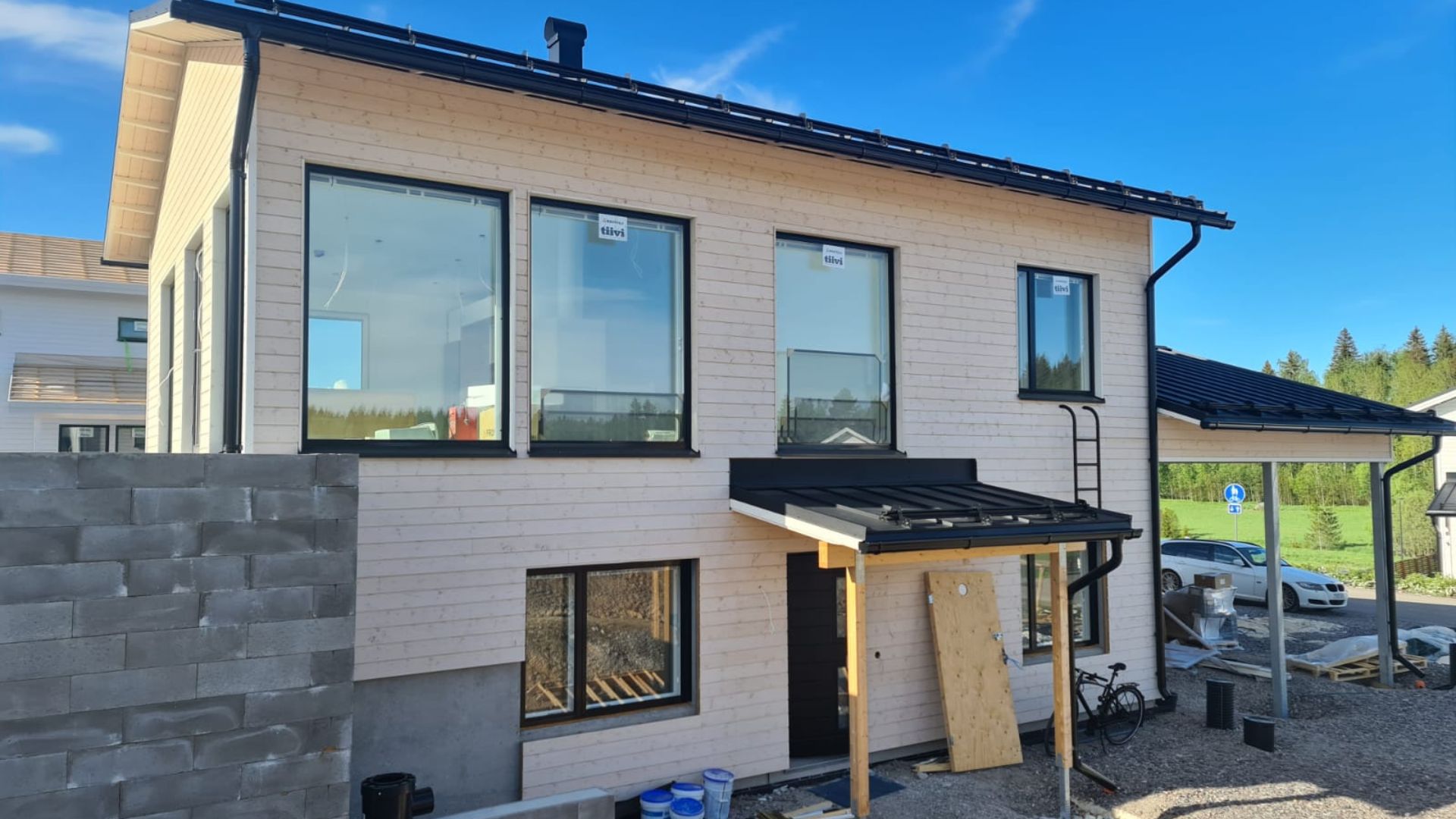 Uudiskohteen julkisivu viimeisteltiin laadukkaalla maalauksella. Talo sai näyttävän ja kestävän pinnan, joka korostaa arkkitehtuuria ja suojaa pintamateriaaleja pitkään.
